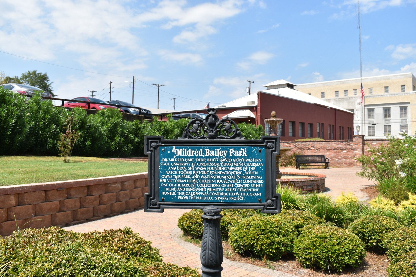 The Law Office houses a collection of Clementine Hunter paintings, renowned primitive artist, is displayed, donated by Mildred Bailey, a founding member of the Natchitoches Historic Foundation, from her private collection. A portrait of Dr. Bailey with Clementine Hunter is displayed with the collection. The collection is arranged from her earliest works on the left to the latest works on the right. The large center painting was completed in the 1940’s.